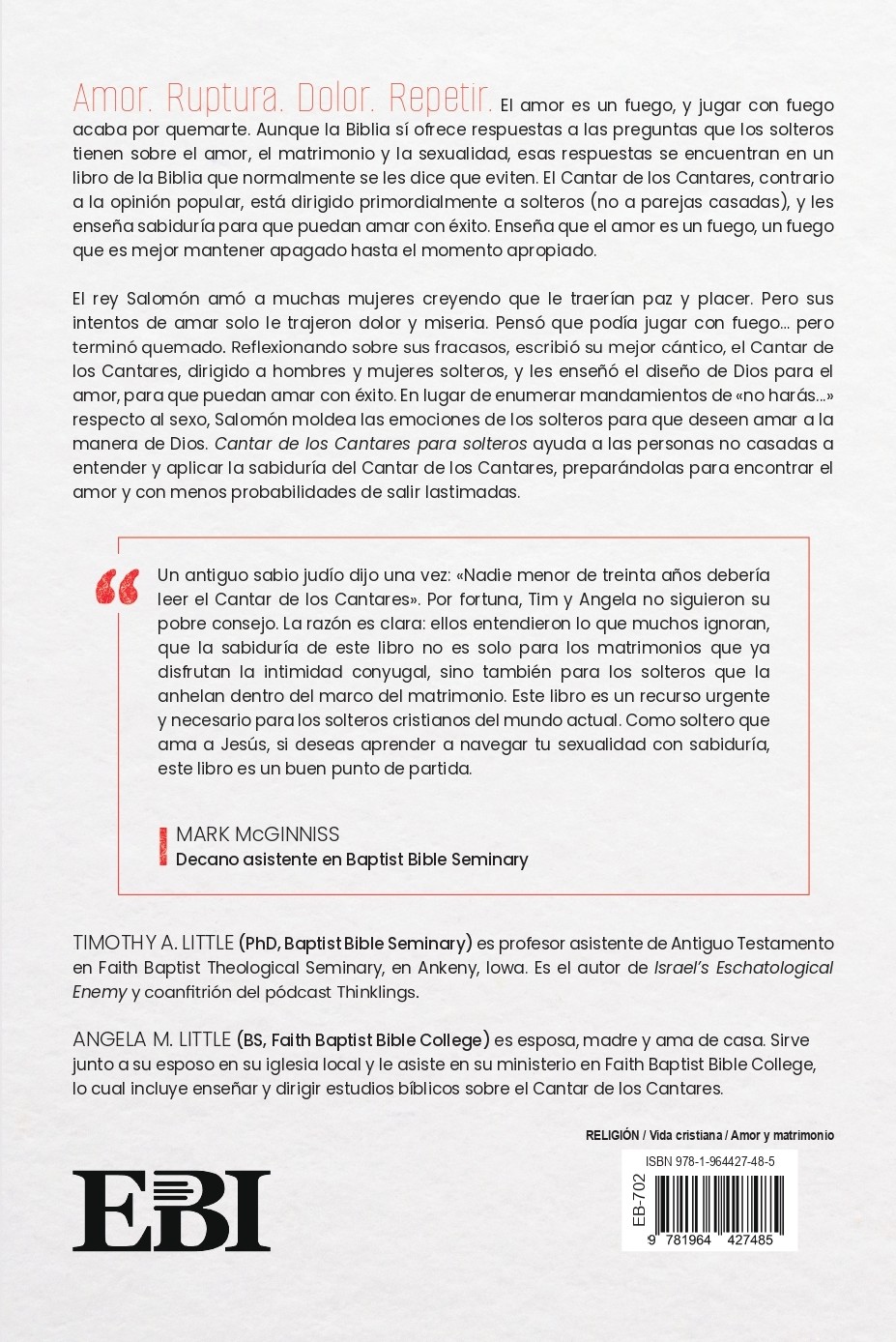Love. Breakup. Pain. Repeat. Love is a fire, and playing with fire gets you burned. While the Bible provides answers to singles’ questions concerning love, marriage, and sex, those answers are found in a book of the Bible that singles are regularly told to avoid. The Song of Solomon, contrary to popular opinion, primarily addresses singles (not married couples), teaching them wisdom so they can love successfully. It teaches that love is a fire, a fire best left unlit until the appropriate time. King Solomon loved many women whom he thought would bring him peace and pleasure. Instead, his attempts at love brought him pain and misery. He thought he could play with fire, but he got burned. Reflecting on his failures, he wrote his best song, the Song of Songs, to unmarried men and women and taught God’s design for love so they can love successfully. Instead of listing “thou shalt not” commands concerning sex, Solomon shapes the affections of singles so that they want to love God’s way. Song of Songs for Singles helps unmarried people understand and apply the wisdom of Song of Songs, preparing them to find love and less likely to get burned.